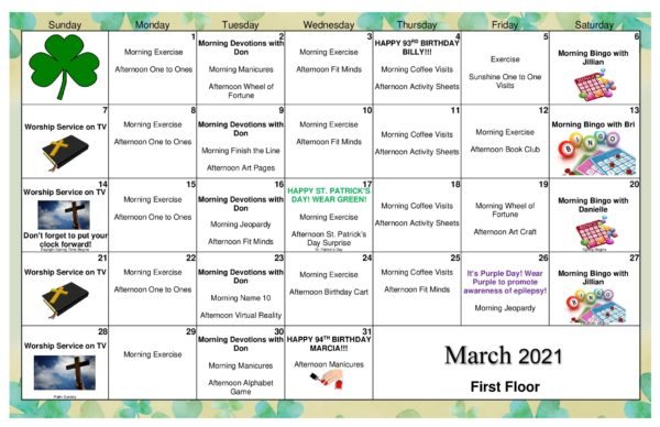 Tabor Manor Calendar – Mar 2021 March 1, 2021